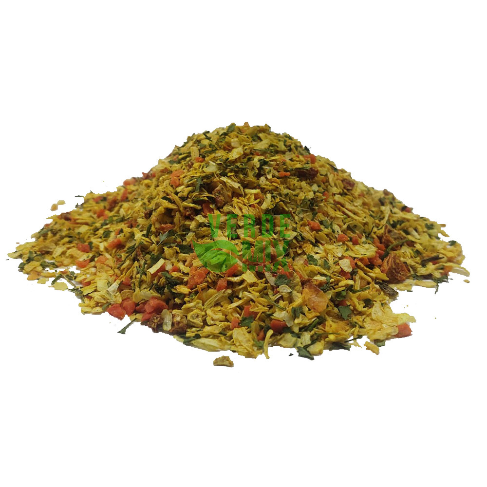 Ingredientes: Cebola desidratada, realçador de sabor legumes, tomate desidratado, salsa desidratada, cenoura desidratada.